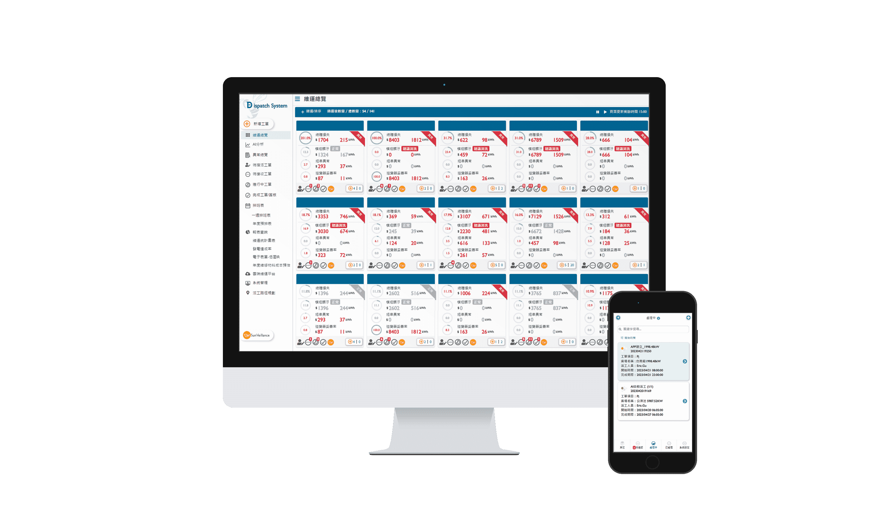 全流程运维管理包括云端监控工具、、AI分析与智慧自动派工及运维APP,,,,实现电厂自主管理。。