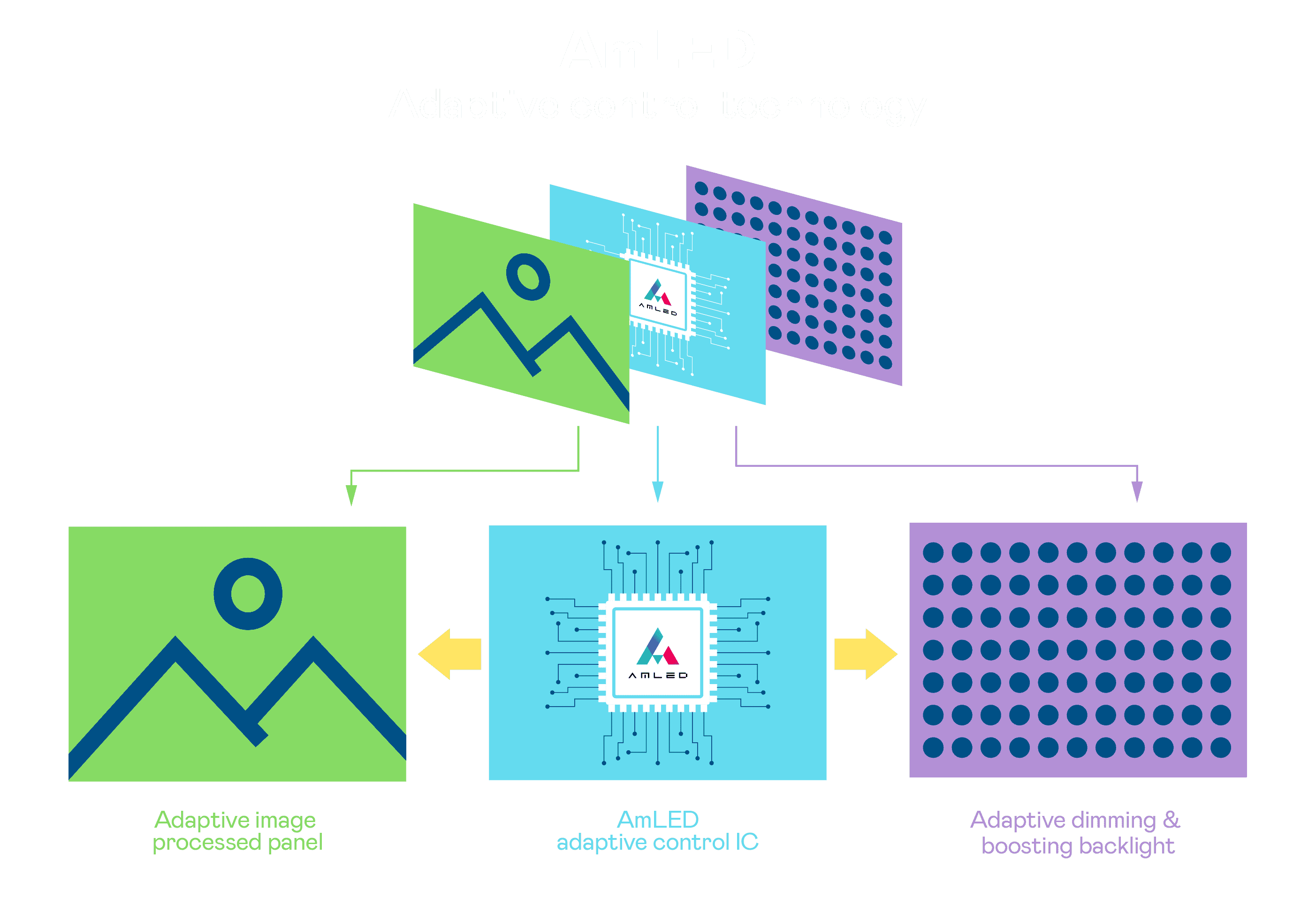 AmLED 具备更省电与低蓝光特性。。。。与一般的 LED 背光显示技术相比,,由于 AmLED 常时处于局部调光状态,,,,其功耗仅有前者的 50% 左右,,,,同时 AmLED 还具备低蓝光特性,,满足长时间使用的护眼需求。。。。