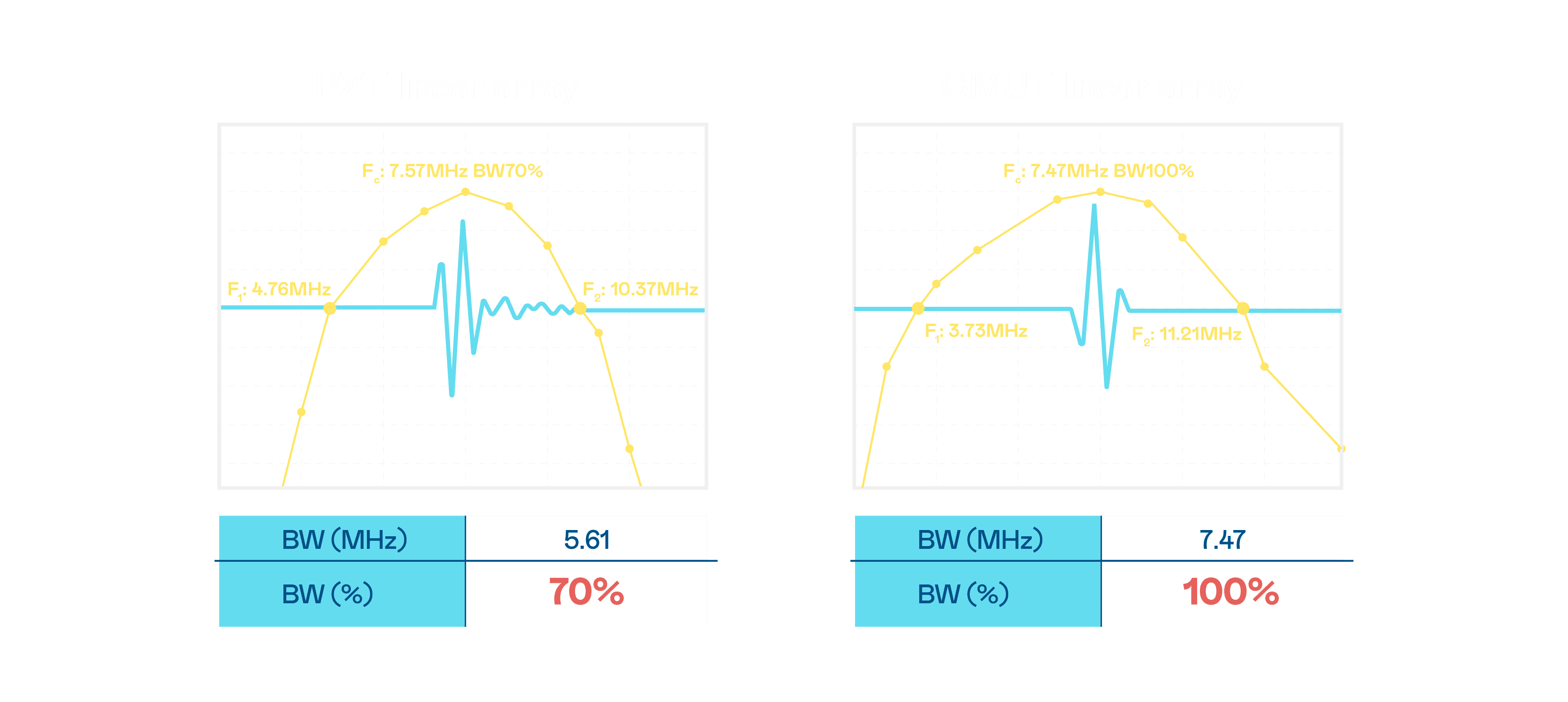 CMUT 技术是一种用电容式微机电元件来产生超音波讯号的技术。。。与传统 PZT 压电式技术相比,,CMUT 频宽增加 30%,,,,更宽频的超音波讯号让影像解析度大幅提升,,,是实现高影像品质医疗超音波扫描、、、促进精准医疗发展的关键技术。。。
